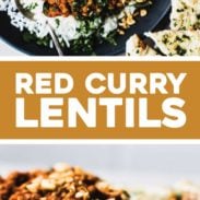 Red curry lentils is my all-time favorite lentil recipe. Thick, creamy, saucy, and perfect as leftovers. Plus it’s healthy and easy!