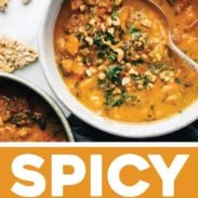 Spicy Peanut Soup with Sweet Potato + Kale